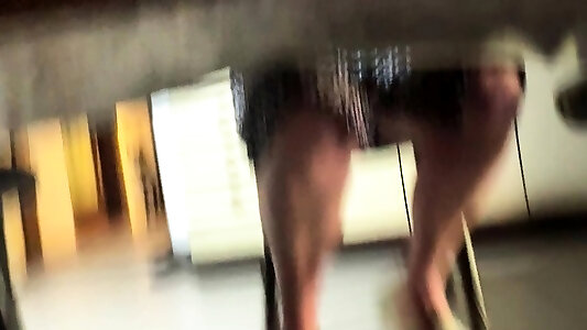 My mother in law spreads her beautiful legs under the table