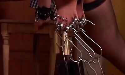 Jiggly little submissive gets rudely bum fucked on pogo stick