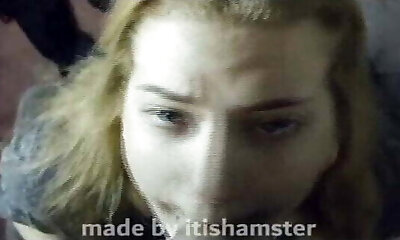Put belt around drunk milf's neck and choke and slap her till she sucks it.