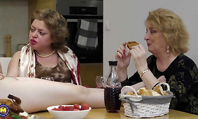 Dinner with weirdo lesbians - 4 matures sharing one teen
