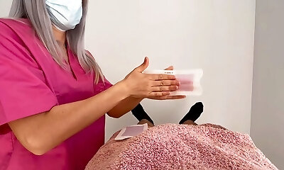 Cock waxing by cute novice girl jerks me off until I jizm