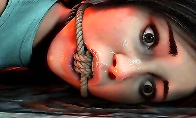 Girl Bound in Ropes and Duct Tape Wrap Gagged Bondage