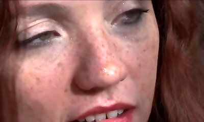 Redhead pale MILF tramp Summer Hart has her tits tantalized in bondage