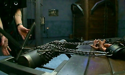 Babe gets bondaged and penetrated by a powerful fuck machine