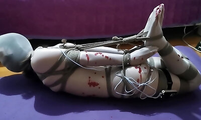 Bound, pussy inserted, numerous vibes, dildo in mouth, and not allowed to jism while Sir showers and then degrades me