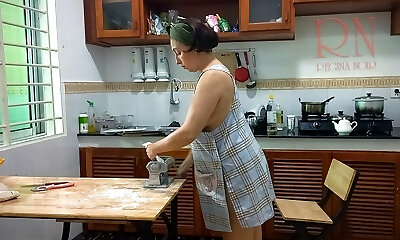 Ravioli Time! Naked Cooking. Regina Noir, a naturist cook at nudist motel resort. Nude maid. Bare housewife. Teaser