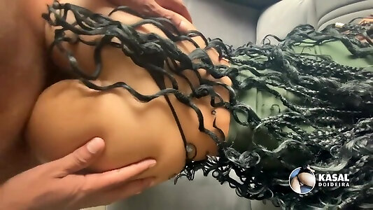 Brazilian babe with a big butt gets a nice one down her holes