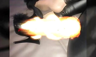 Beautiful woman pegging her boy's and gets jism.