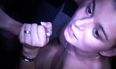 Brunette classy stunner slapping gloryhole cock