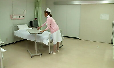 Chubby Japanese nurse moans in pain as the guy screws her beaver