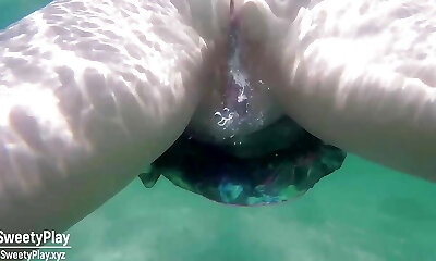 Underwater internal cumshot and peeing