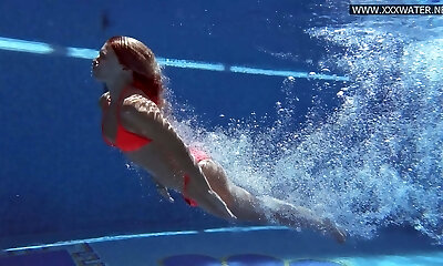 Breath holding underwater. Supremacy and rough sex. Naturist Regina Noir swimming, sucking and romping in the swimming po