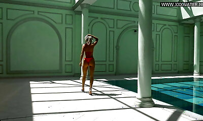 Dominatrix Jasmine and bondage in the pool