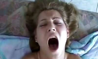Curvaceous maiden is trying not to scream too loud